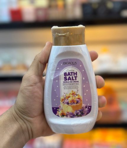 خرید اینترنتی نمک حمام لایه بردار وانیلا آیس کریم بیوآکوا. روشن کننده و نرم کننده پوست بدن با رایحه شیرین.