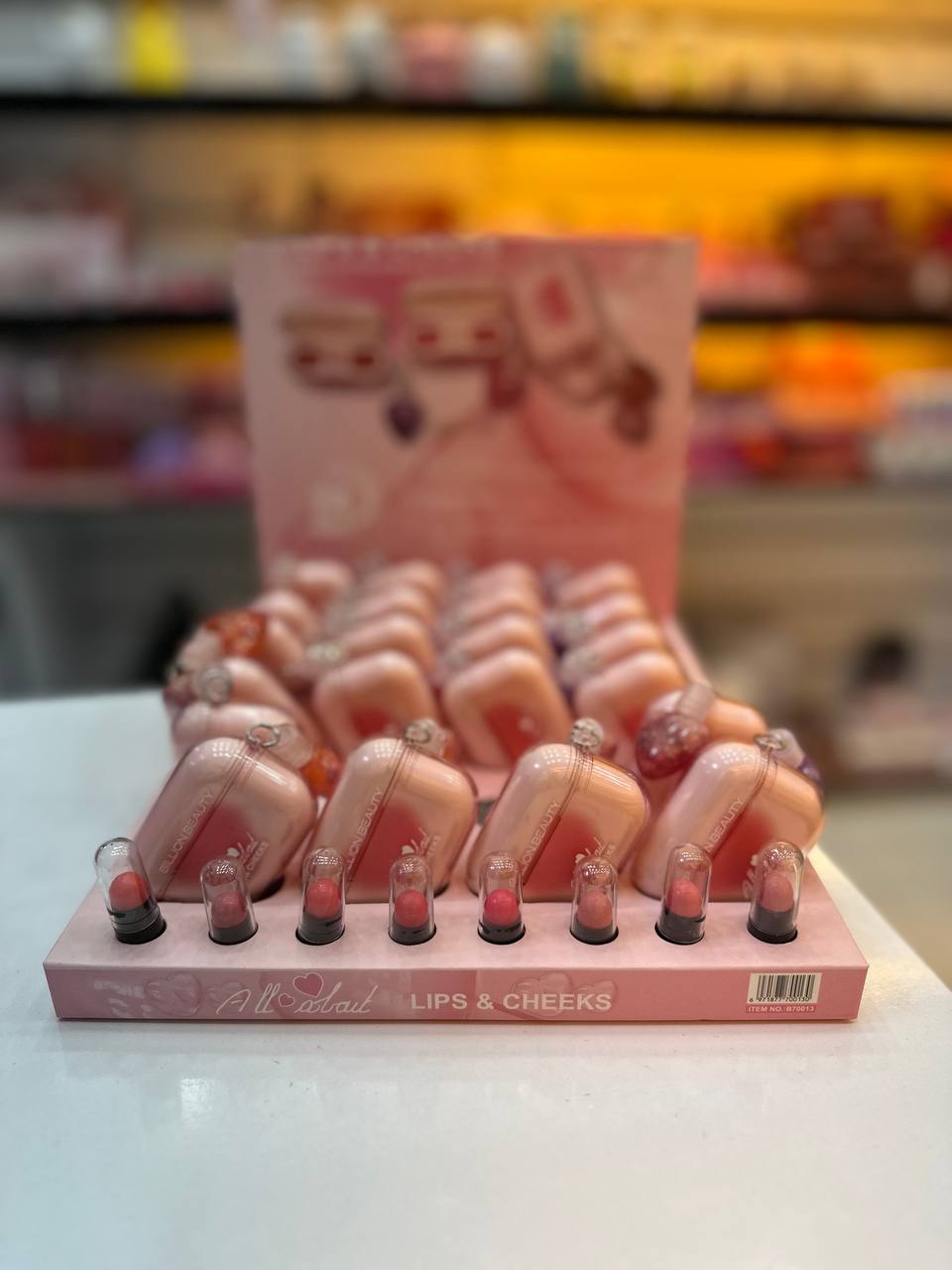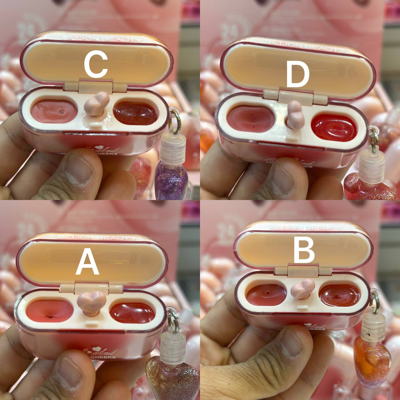 - یک رژلب کره ای و یک بالم لب و یک شاین لب آویز همراه با براش