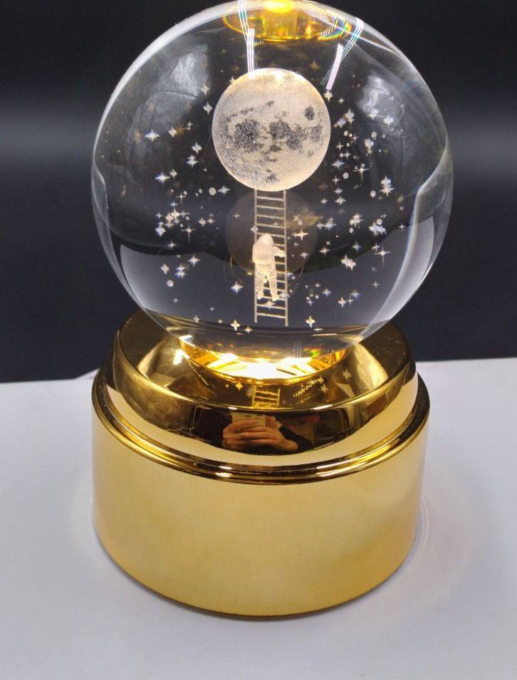 چراغ خواب گوی کریستالی طرح ماه و فضانورد سایز ۸ با پایه چرخشی